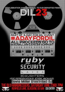 In memory of our late friend DIL23, some friends have come together to organise #ADayforDIL on Saturday 23rd June. There will be a gig in Glasgow involving Ruby, Security, Laica and others, as well as a day of releases, both physical and digital. All profits from the day will be going to MacMillan Cancer Support.