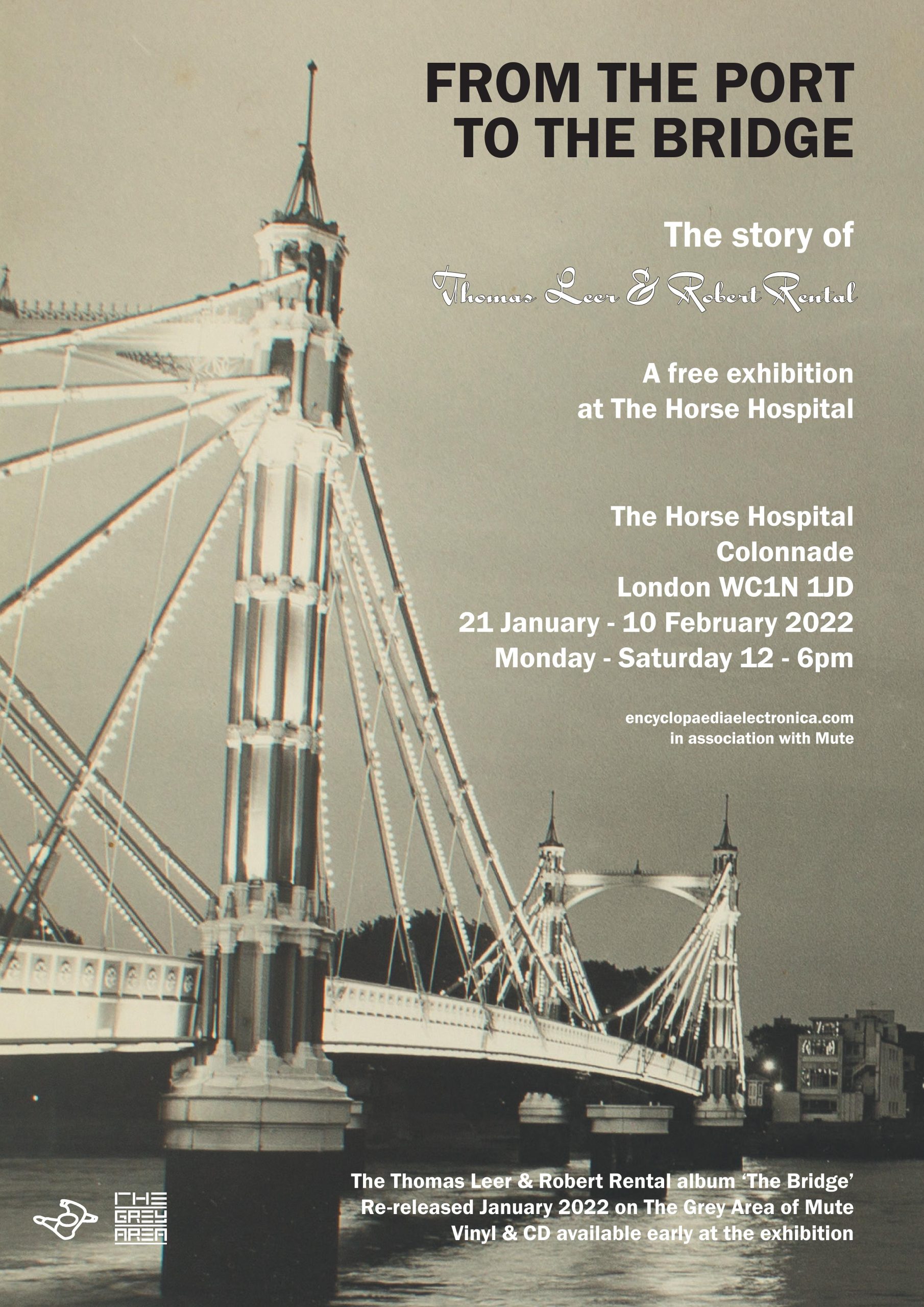 Encyclopaedia Electronica is delighted to announce that, in association with Mute, “From The Port To The Bridge” – the story of Thomas Leer and Robert Rental” exhibition will be on view at The Horse Hospital, London from Friday January 21st – Thursday 10th February 2022.